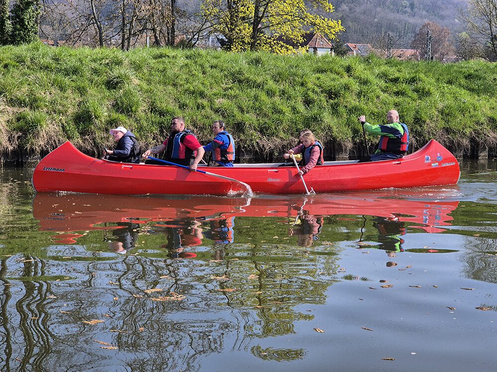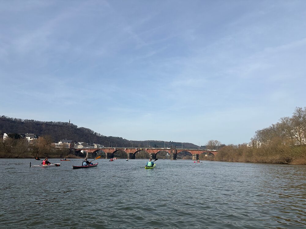Unser Ziel war das Bootshaus des KC in Mettlach. Unterwegs legten wir beim Nikolaus an der Saarschleife einen Zwischenstopp ein, bevor es weiter zur Schleuse in Mettlach ging. Beim KC in Mettlach angekommen, wurden wir herzlich empfangen und mit einem leckeren Imbiss begrüßt. Gemeinsam ließen wir den schönen Paddeltag in gemütlicher Runde ausklingen.