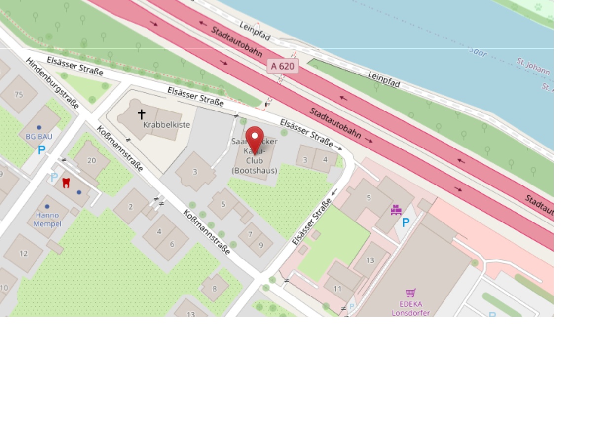 Der Saarbrücker Kanu-Club liegt direkt an der Saar bei Flusskilometer 89.